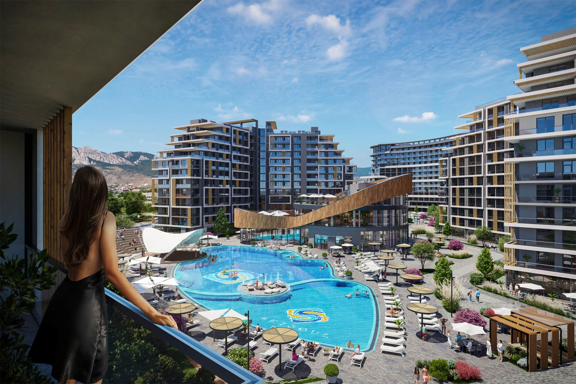 На территории комплекса предусмотрена развитая инфраструктура, включающая wellness-зоны, бассейны, рестораны, детские площадки и прогулочные аллеи. Здесь можно забыть о повседневной суете и полностью посвятить себя отдыху и восстановлению сил. Апартаменты с авторским дизайном и панорамным остеклением позволяют наслаждаться видами на Чёрное море и Кара-Даг, даря ощущение гармонии и свободы.